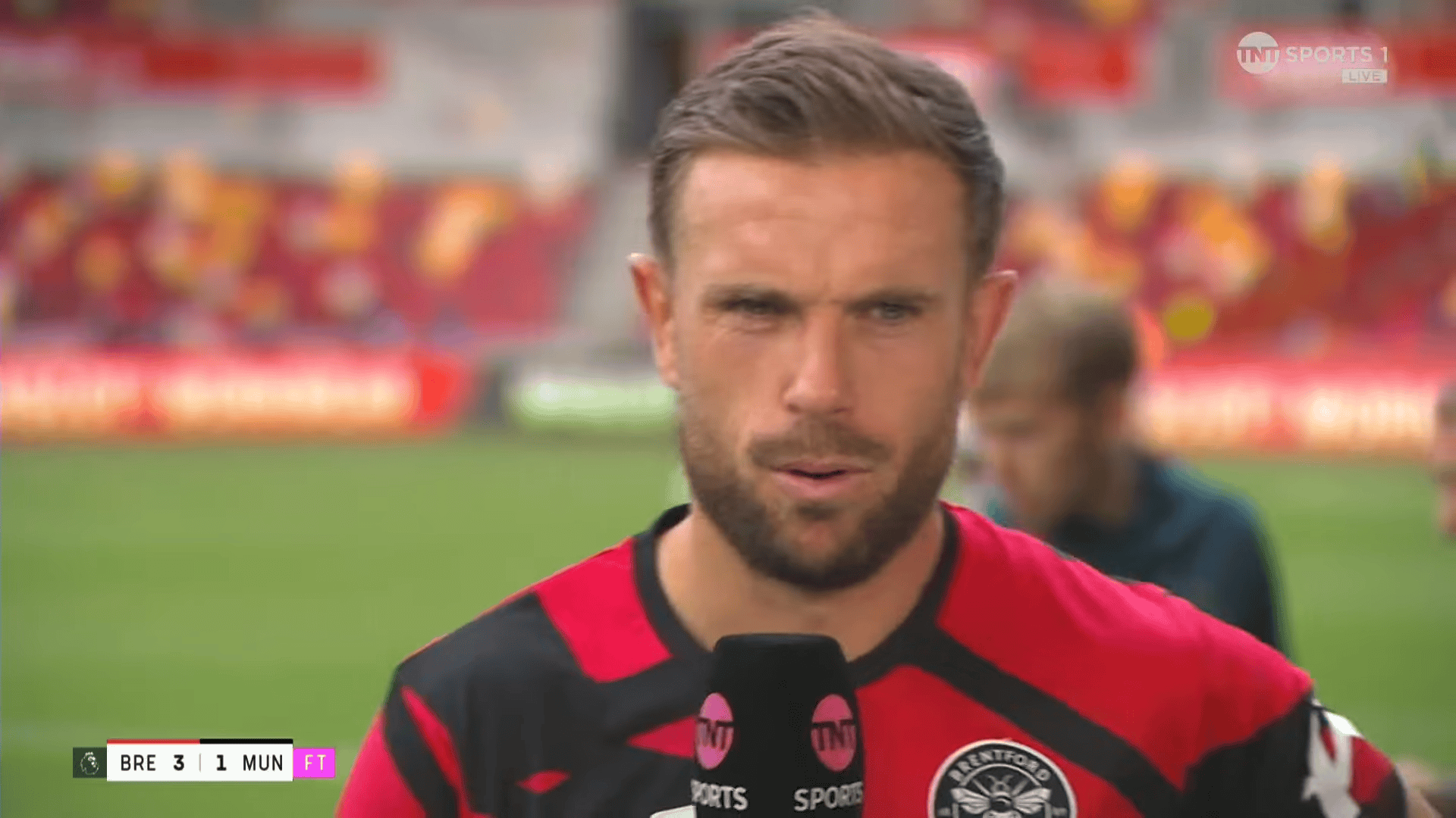 虎扑09月27日讯 英超联赛,布伦特福德3-1打败曼联,赛后,布伦特福德中场乔丹-亨德森接纳TNT体育采访。