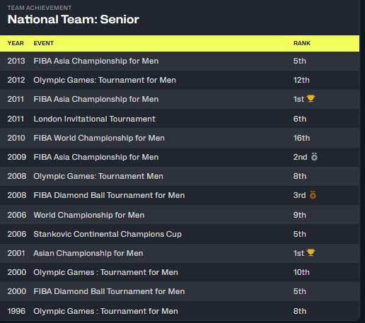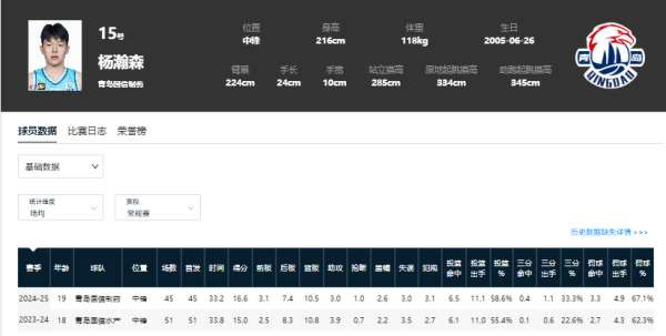 活命于今收尾,杨瀚森代表国度队出战的比赛较少。