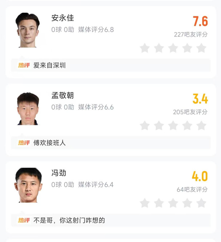 至于孟敬朝,他在本场比赛替补出场替补出战27分钟,3次丢失球权的同期,不仅拼抢不积极,扫视力也十分不荟萃,况且还在穆斯卡特眼前站着看球,而在赛后,孟敬朝亦然被评为全场最差,获取了3.4分,而且还有球迷将其称为傅欢交班东说念主……